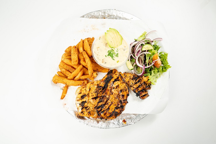 Chicken Breast$27.90w/ your choice of either mushroom, avocado, creamy bacon or peri peri sauce, served with Garden salad and chips