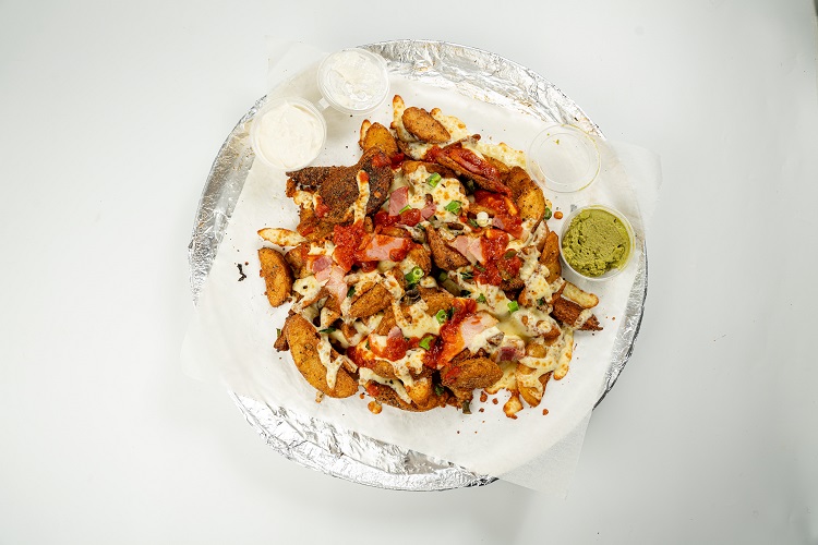 corn chips, cheese, salsa, jalapeños, bolognese sauce, sour cream, guacamole + spring onionChoose one